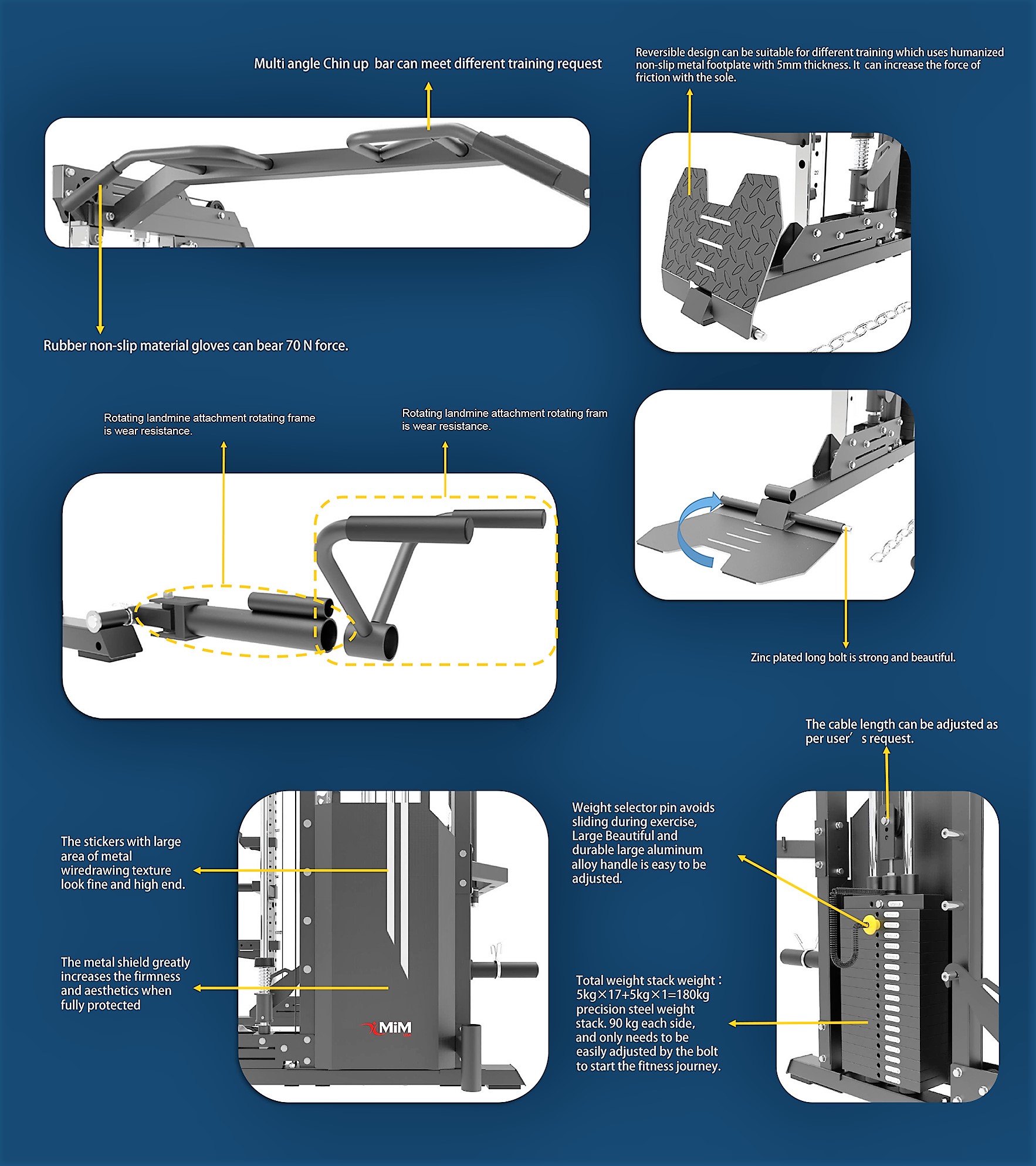 • DESIGNED FOR 24/7 COMMERCIAL WORKOUT – The MiM USA total body workout equipment was designed and built for 24/7 commercial continuous exercise including intense weightlifting and strength training. It is a Tough, Strong and Durable Giant Machine with a Lifetime Warranty on Frame. (Weight Plates NOT included)