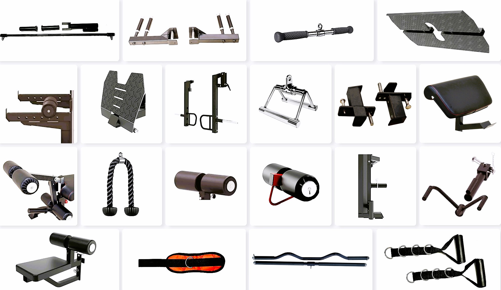 • TONE AND STRENGTHEN ALL MAJOR MUSCLES – This all-in-one, total body workout training system offers everything you need to strengthen all major muscle groups. Our commercial strength machine also includes various accessories such as: V-Handle, Strap Handle, Ankle Strap, Triceps Pull Down Rope, Push Bar, Grips, Leg Press Attachments, Push & Sit Up Attachments, Arm Workout Tube, Knurl Bar, Straight Bar, Functional Training Bar, Triceps Bar, Crossovers Handles, Bar Storage and Hooks, 400 Lbs. Weight Stacks. (24 attachments included)